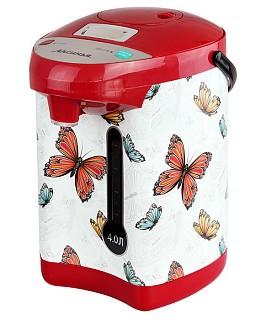 Объем 4 л Номинальная потребляемая мощность 800 Вт Мощность в режиме поддержания температуры воды 35 Вт Чайник-термос предназначен для кипячения воды и поддержания ее температуры в бытовых условиях Вращение корпуса на основании на 360° Внутренняя ёмкость из высококачественной нержавеющей стали Шкала уровня воды Световые индикаторы работы Съёмный сетевой шнур электропитания Съёмная крышка для удобства очистки 3 способа подачи воды: ручной автоматический электрический Режим поддержания температуры воды Функция повторного кипячения Блокировка ручной помпы от случайного нажатия Блокировка включения без воды Автоматическое отключение при недостаточном количестве воды Защита от перегрева (срабатывание при 105-115?C)