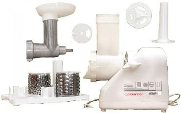 Мощность 400 Вт, шинковка, реверс, насадка для теста, насадка для колбас, 3 сменных барабана