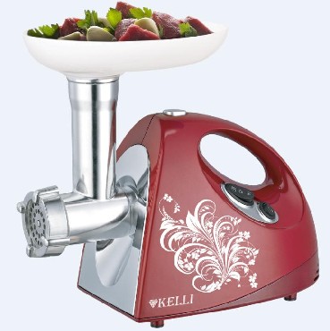 Мощность 1600Вт. 2 скорости. Защита двигателя от перегрузок. Прочный метал. шнек. 2 острых ножа из высококач. стали. 3 насадки: 3мм, 5мм, 7мм. Насадки д/пригот-я дом. колбасы. Реверс. Насадка "куббе" и насадка д/колбасы и сосисок.