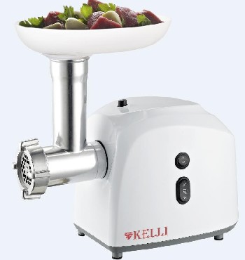 Мощность 1300Вт. 2 скорости. Защита двигателя от перегрузок. Прочный метал. шнек. 2 острых ножа из высококач. стали. 3 насадки: 3мм, 5мм, 7мм. Насадки д/пригот-я дом. колбасы. Реверс. Насадка "куббе" и насадка д/колбасы и сосисок.