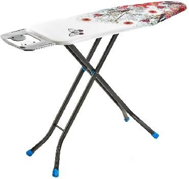 Доска гладильная,размеры 120*38 см. Основа стола: высокопрочная стальная монолитная поверхность с перфорацией для свободного прохождения пара МОНОБЛОК.высокопрочный металлический каркас,плавная регулировка высоты,механизм фиксации в сложенном и рабочем положении.Подставка под утюг с силиконовыми жаропрочными накладками.Чехол хлопок 100%