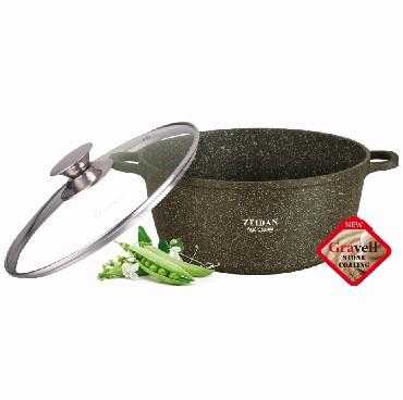 Кастрюля д.20см, 2,7 л, изготовлена из высококач. литого алюминия с новым внутренним антипригарным каменным покрытием с гранитной крошкой Gravell*. Внешнее каменное покрытие. Крышка из жаропрочного стекла с отверстием для выхода пара.