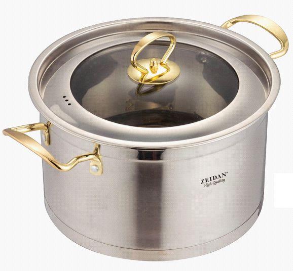 Кастрюля со стеклянной крышкой - 4,7 л (?22 см), нержавеющая сталь, комбинированная полировка снаружи, матовая полировка внутри, крышка - стекло с металлической окантовкой, РУЧКИ "ПОД ЗОЛОТО", 3-x СЛОЙНОЕ КАПСУЛИРОВАННОЕ ИНДУКЦИОННОЕ ДНО. Подарочная упаковка с пластиковой ручкой.