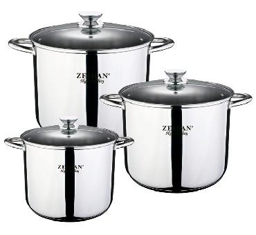 Набор кастрюль, 6 предм. (3 КАСТРЮЛИ С КРЫШКАМИ: 9.5 Л (24 см ), 12.0 Л (26 см ), 14.0 Л (28 см ), нержавеющая сталь, комбинированная полировка снаружи, матовая полировка внутри, шкала литража, крышки - стекло, 3-x СЛОЙНОЕ КАПСУЛИРОВАННОЕ ИНДУКЦИОННОЕ ДНО. Подарочная упаковка.