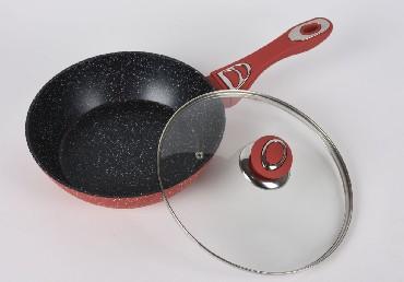 28см (2,5/3мм), высота 7,5 см, внутри 3-х слойное мраморное антиприг. покрытие с рельефом , снаружи: 3-х слойное цветное жаропрочн. мраморное покрытие. Цветная ручка с покрытием soft touch, крышка стеклянная. Подходит для использов. на индукционной плите. Не подходит для посудомоечной машины. Состав: кованый алюминий.