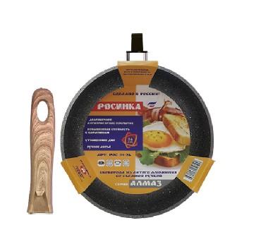 Серия Серый Гранит. Сковорода ГЛУБОКАЯ O 26 см, h=7,0 см, толщина стенок 4 мм, толщина дна 6 мм. ВНУТРЕННЕЕ 4-х СЛОЙНОЕ АНТИПРИГАРНОЕ ПОКРЫТИЕ QuanTanium С ГРАНИТНОЙ КРОШКОЙ, внешнее антирпигарное покрытие, литой алюминий, прорезиненная съемная ручка "под дерево".