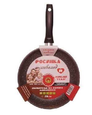 Серия Шоколад. Сковорода ГЛУБОКАЯ O 26 см, h=7см, толщина стенок 4 мм, толщина дна 6 мм. ВНУТРЕННЕЕ 4-х СЛОЙНОЕ АНТИПРИГАРНОЕ ПОКРЫТИЕ QuanTanium С ГРАНИТННОЙ КРОШКОЙ, литой алюминий, бакелитовая ручка.