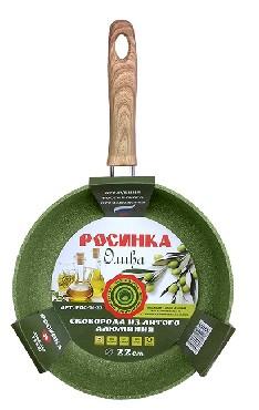 Серия Олива. Сковорода ГЛУБОКАЯ O 22 см, h=5,5 см, толщина стенок 4 мм, толщина дна 6 мм. ВНУТРЕННЕЕ 4-х СЛОЙНОЕ АНТИПРИГАРНОЕ ПОКРЫТИЕ QuanTanium С ГРАНИТНОЙ КРОШКОЙ, литой алюминий, прорезиненная ручка "под дерево".