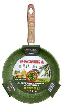 Серия Олива. Сковорода ГЛУБОКАЯ O 24 см, h=6,0 см, толщина стенок 4 мм, толщина дна 6 мм. ВНУТРЕННЕЕ 4-х СЛОЙНОЕ АНТИПРИГАРНОЕ ПОКРЫТИЕ QuanTanium С ГРАНИТНОЙ КРОШКОЙ,литой алюминий, прорезиненная ручка "под дерево".