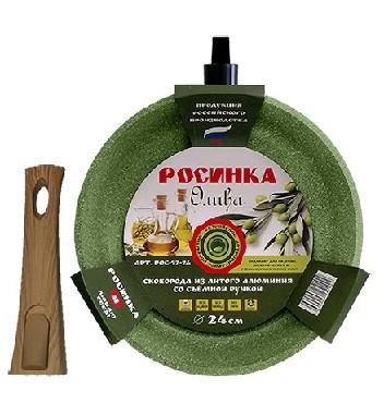 Серия Олива. Сковорода ГЛУБОКАЯ O 24 см, h=6,0 см, толщина стенок 4 мм, толщина дна 6 мм. ВНУТРЕННЕЕ 4-х СЛОЙНОЕ АНТИПРИГАРНОЕ ПОКРЫТИЕ QuanTanium С ГРАНИТНОЙ КРОШКОЙ, внешнее антирпигарное покрытие, литой алюминий, прорезиненная съемная ручка "под дерев