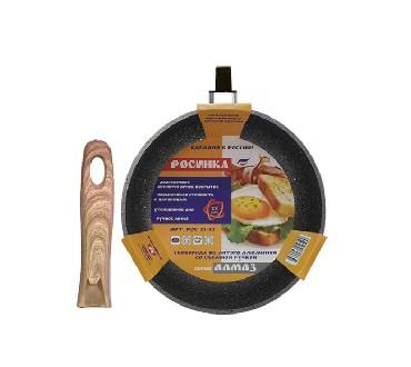 Серия Серый Гранит. Сковорода ГЛУБОКАЯ O 22 см, h=5,5 см, толщина стенок 4 мм, толщина дна 6 мм. ВНУТРЕННЕЕ 4-х СЛОЙНОЕ АНТИПРИГАРНОЕ ПОКРЫТИЕ QuanTanium С ГРАНИТНОЙ КРОШКОЙ, внешнее антирпигарное покрытие, литой алюминий, прорезиненная съемная ручка "под дерево".