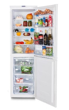 (ВхШхГ)200х57,4х61см. 2-камерный, морозилка внизу. Объем 365л. Объем морозилки 140л. Управл-е электромеханическое. 1 компрессор. Размораж-е морозильной камеры ручное. Размораж-е холодильной камеры капельная система. Цвет белый.
